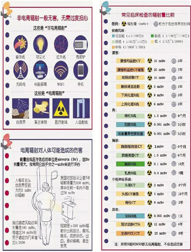 體檢車經(jīng)過幾十年的發(fā)展越來越先進,DR體檢車上面裝有車載DR設備??梢宰鲂夭縓光線檢查。一臺透視儀在體檢者胸前來回移動照射,醫(yī)生在另一頭的檢查室觀察。體檢車放射檢查的確有利有弊是一把雙刃劍,不應檢查過度,也不必因此諱疾忌醫(yī)。因為通過檢查可以更加容易對患者的病情確診,對癥下藥。放射性體檢,對身體或多或少有點傷害,主要的危害是放射檢查對我們是通過來自X線產(chǎn)生的電離進行輻射。但是在必須檢查的情況下研究表明利大于弊,因為接受一定量的輻射是正常的。體內(nèi)可以自我修復。一個大人接受一年100毫西弗的輻射對身體沒多大傷害的。但是不能過度放射檢查。當有必要做的。當數(shù)不能過于頻繁的情況或逐步改善無顯著變化,也沒有必要每天進行審查,否則成為放療的變相。以下是常見臨床檢查的輻射量比較圖